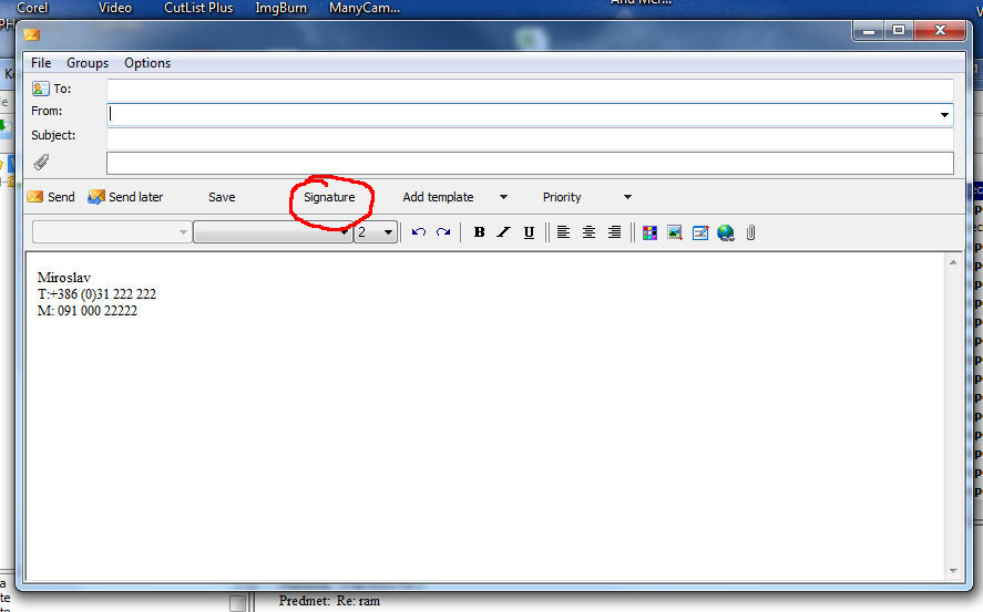Druga slika napravio si potpis za svoj email. Ti imas trenutno jedan a ako ih imas vise mozes za svaki napraviti zasebno te pri kreiranju novog mejla u ovisnosti sa kojeg svog maila saljes kada kliknes na signarure on ce to ispisati.