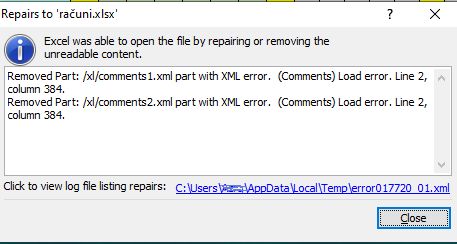 Nisam jos nista probao za opravak. I prije i nakon reinstaliranja imao sam office 2007. Otvorim ja fal, svi podaci su tu osim komentara. Na moju nesrecu u tim komentarima su mi veoma važni podaci.