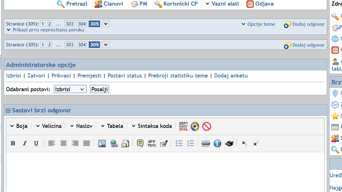 napisao sam post u dobro jutro i kada posaljem ne vrati me na stranicu gdje je post nego na sljedecu stranicu na kojoj nema niti jedan post. Stranica sa postom je 304, a forum me nakon send stavi na stranicu 305