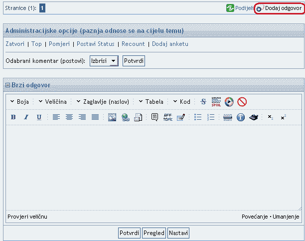 Vratimo se na forumu te ozvorimo prozor za diskusiju odnosno odgovor na temu.