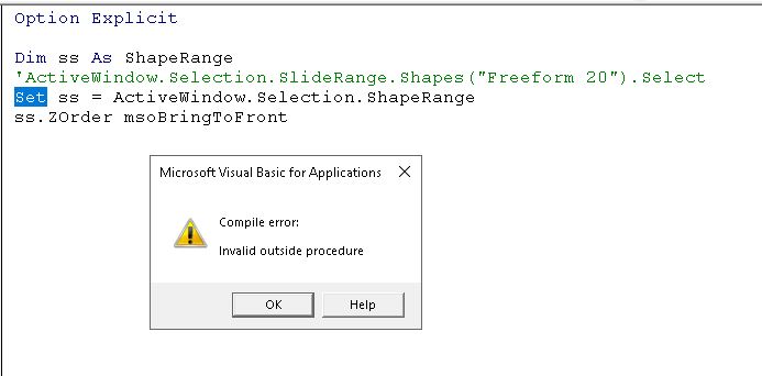 'ActiveWindow.Selection.SlideRange.Shapes("Freeform 20").Select