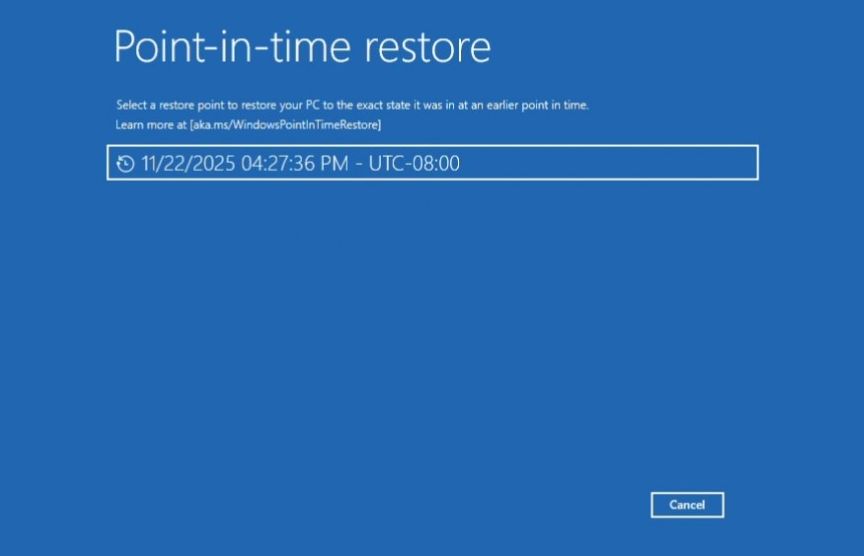 Point-in-time znacajka trenutno je dosupna unutar Dev i Beta kanala u Windows Insider programu svima koji su preuzeli i instalirali KB5070307 azuriranje.
