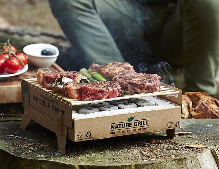 100% prirodan, biorazgradiv i spreman za termičku obradu hrane u svega 5 minuta. Rešetka roštilja izrađena je od bambusa, koji pak ne gori, ostatak roštilja pak je izrađen od kartona koji nosi FSC certifikat dok je grijača ploča napravljena od lava kamena. Briketi za potpalu su ni manje ni više već ugljenizirani komadi bambusa. Jednog kad zapalite CasusGrill (doslovno), ovaj će roštilj proizvoditi temperaturu za pečenje punih sat vremena.